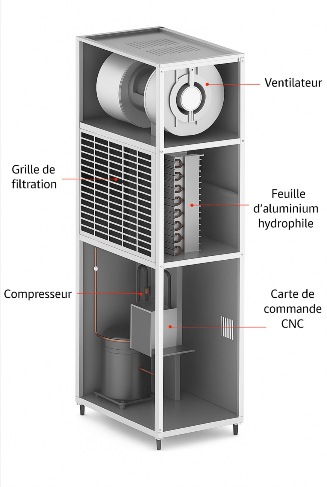 Leur fonctionnement est automatique : une sonde mesure en continu l’humidité et déclenche le cycle dès qu’un excès est détecté.
