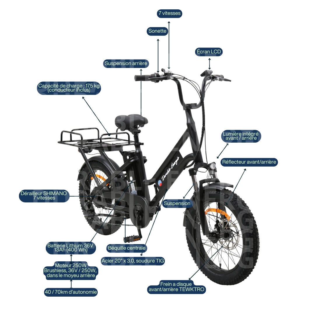 - Batterie : ≥ 400 Wh, assurant autonomie et efficacité pour un usage professionnel quotidien.